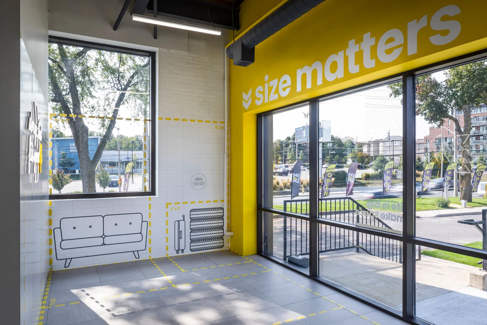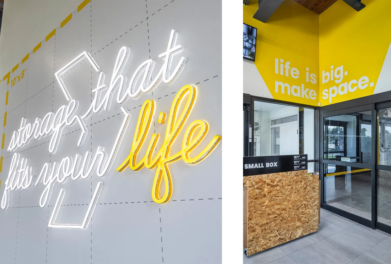This existing 20-year-old site was renovated to reflect the new branding and better align with today’s customer needs. The added features of this site are a retail store that meets every demand for moving and packing supplies, a Demo zone that helps customers pick their desired storage size, and a business center.